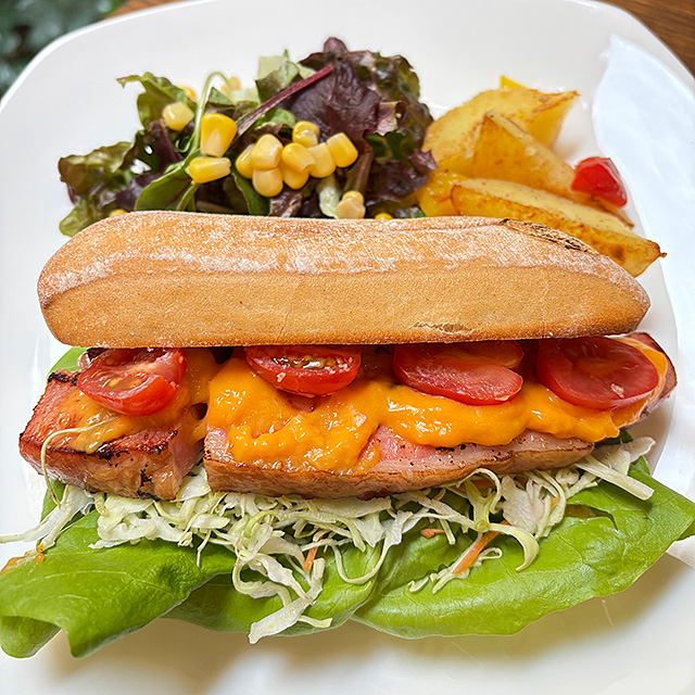 サンドの内容は『生ハムとクリームチーズ』『厚切りベーコン』からお選びいただけます。
